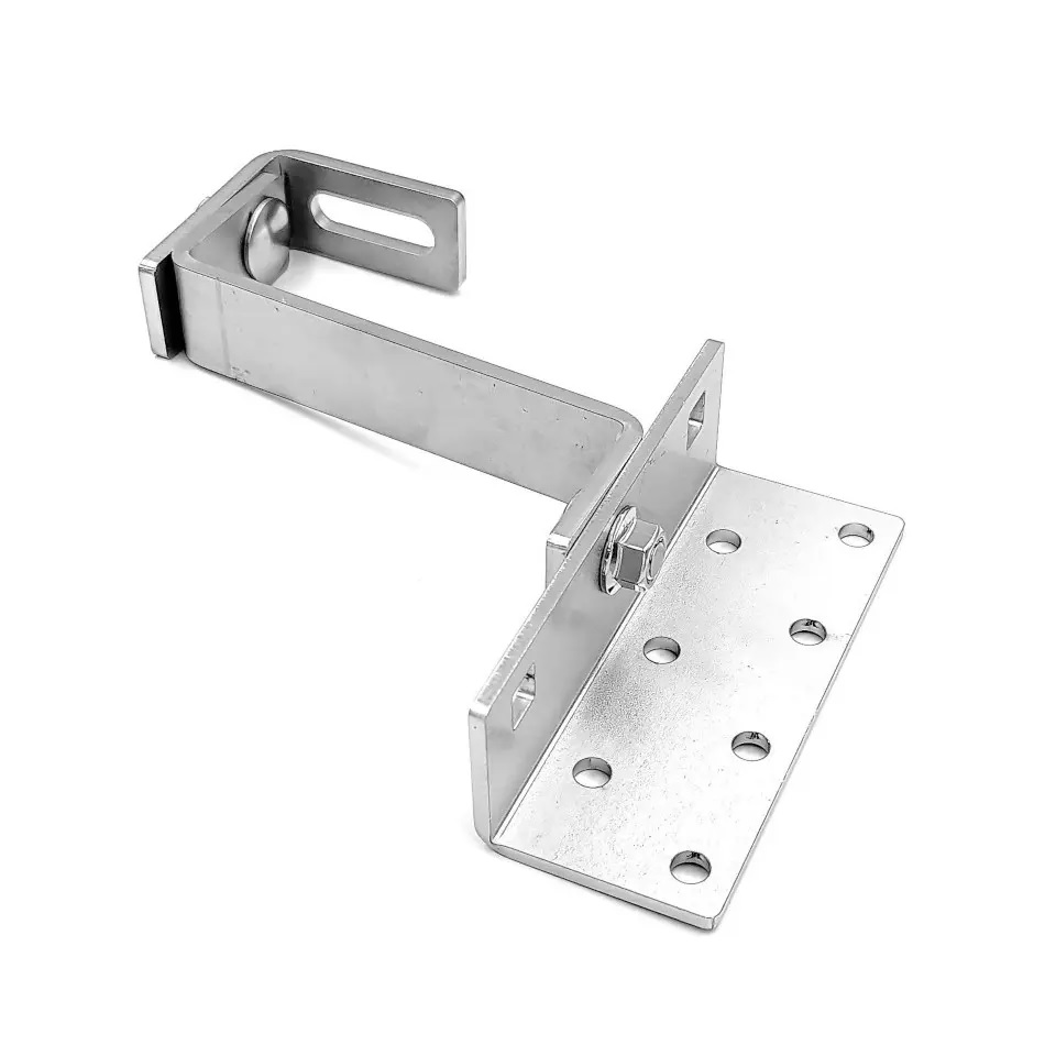 Popis:Střešní hák s 3x nastavením v základové desce a nastavitelnou výškou k uchycení . L:150mm; B:30mm; H(regulace)65-100mm; Nerez obráběná laserem, tloušťka 5mm. Způsob spojování: Hřibový šroub M10x20 + matice M10.